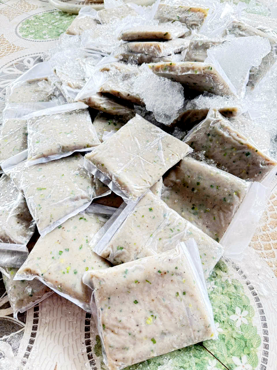 - Dùng màng bọc thực phẩm bọc bát cá vào tủ lạnh cho vào ngăn đá 2 giờ đồng hồ để cá ngấm gia vị rồi lấy ra xay nhuyễn.